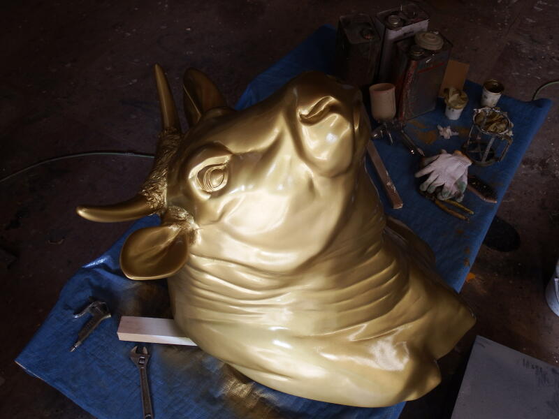 | 2013年6月 足立区店舗内装飾 自社製品「牛」壁掛け制作納品 |