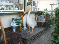 | 庭先、店舗先に動物がお迎え。くちばしの先にはメニューやその日のお知らせなどつり下げてみては? |