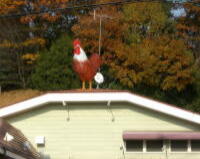 | 「にわとり」を屋根の上に 「風見鶏」ふうの目印 |